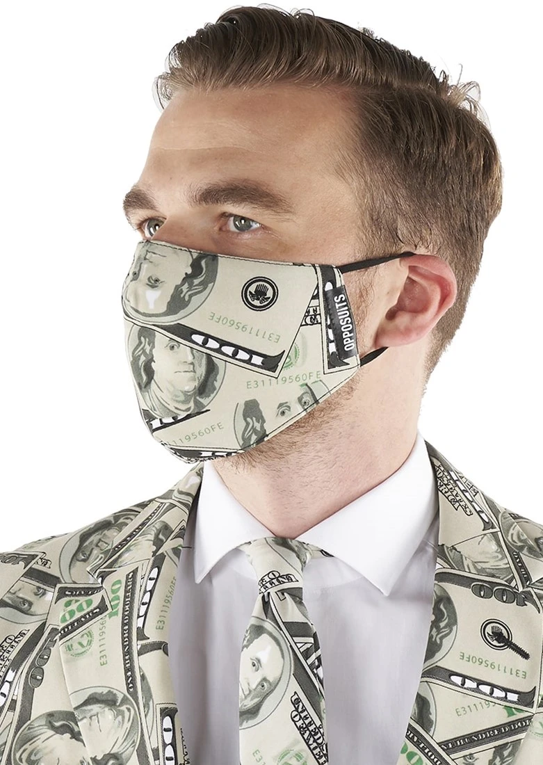 Dit mondkapje is een origineel product van OppoSuits, wat bekend staat om haar kwaliteitspakken met te gekke prints.