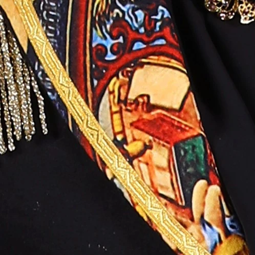 Een prachtige zwarte carnavalsjas met allemaal kleurrijke details. Een mooie damesjas om aan te doen naar een carnavalsfeest!