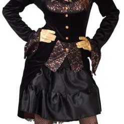 Deze gave zwarte carnavalsjas heeft een motief van zwarte brokaten borduursels. Een stoere jas voor heren om aan te hebben tijdens onder andere carnaval.