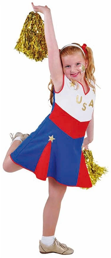 Details: plooien rok en voorop de borst staat de tekst ‘USA’