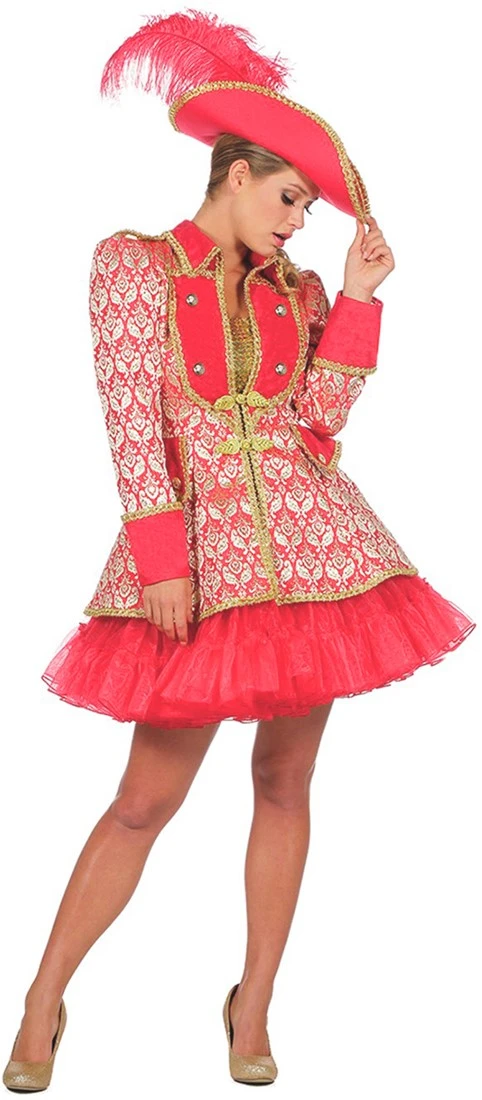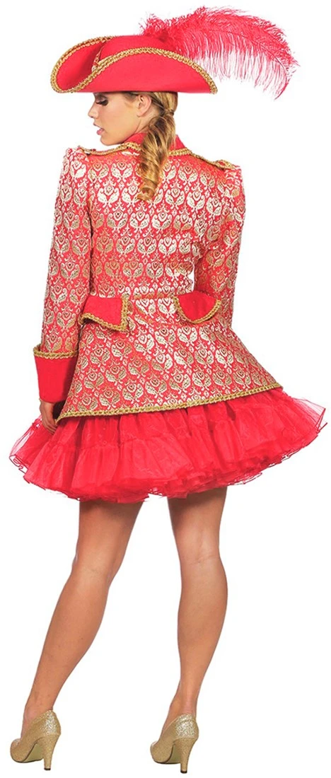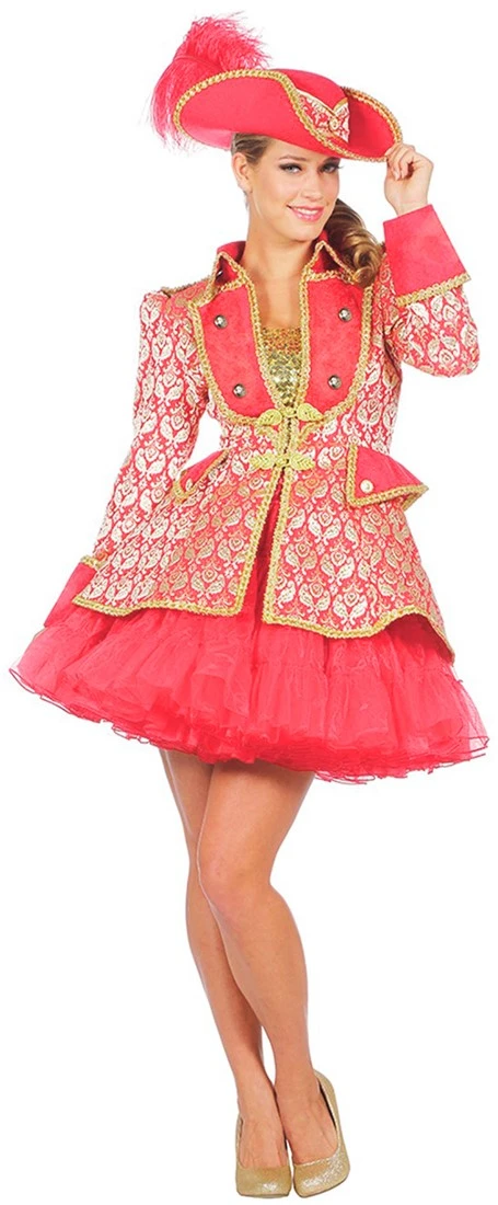 Een prachtige koraal/gouden jas voor bijna ieder feest. Deze carnavalsjas is uitstekend om aan te hebben tijdens (de aanloop naar) carnaval!