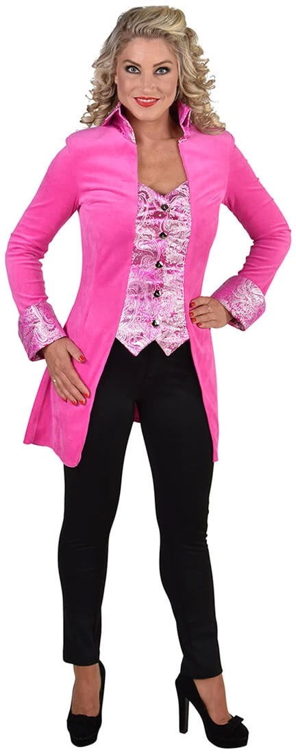 Details: de jas is gemaakt van nicky velours en de opstaande kraag, manchetten en borst heeft een brokaat motief