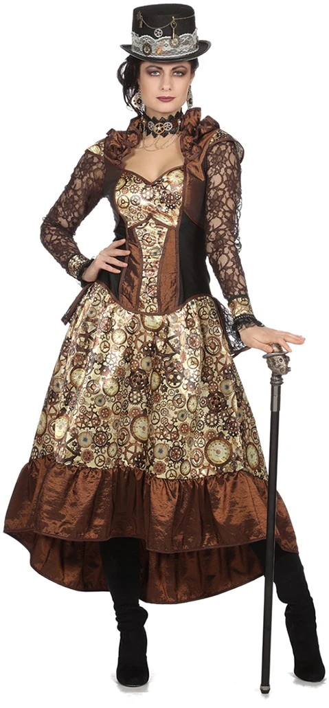 Met deze stoere steampunk jurk stap je terug in de tijd van de industiële revolutie. Met deze prachtige jurk val je zeker op tussen alle feestgangers!