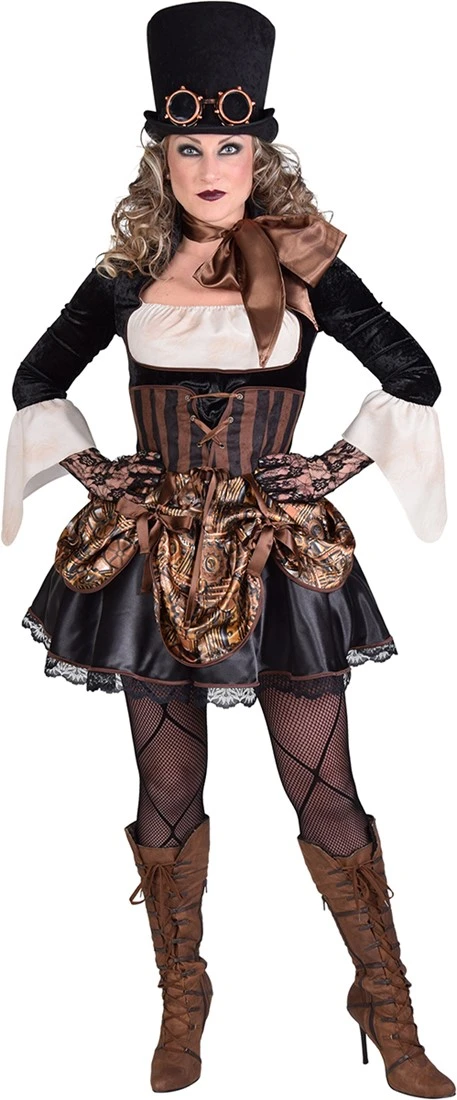 Ga terug in de tijd van futuristische uitvindingen en machines met dit damesjurkje! En lijkt het met de juiste accesoires alsof je zo uit 1900 bent komen lopen.