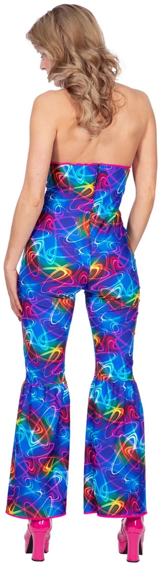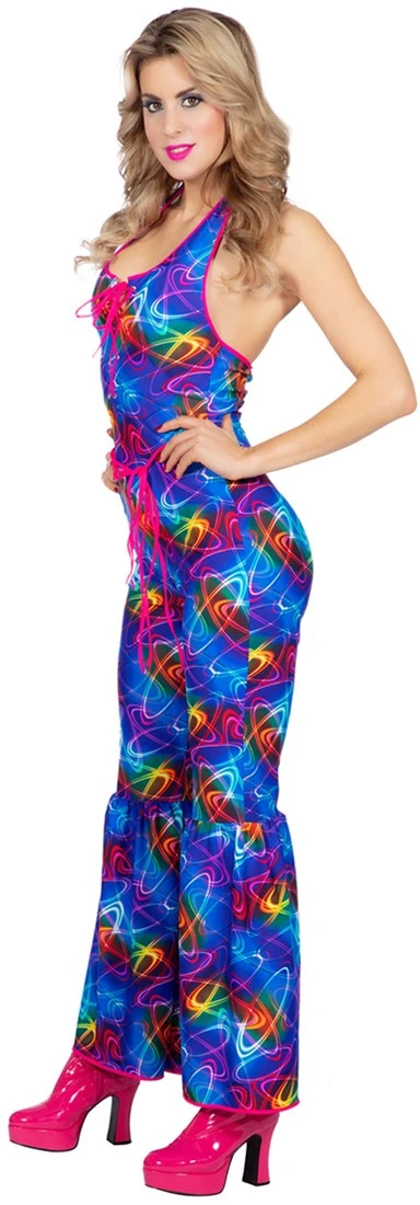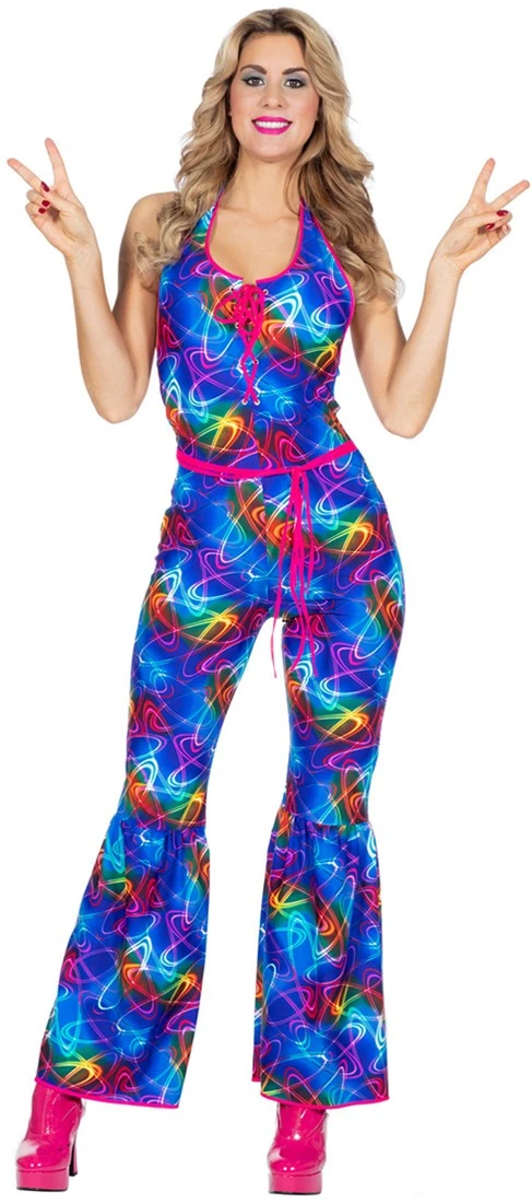 Een vrolijk en lekker fel gekleurde jumpsuit erg leuk voor een disco seventies of hippie feest