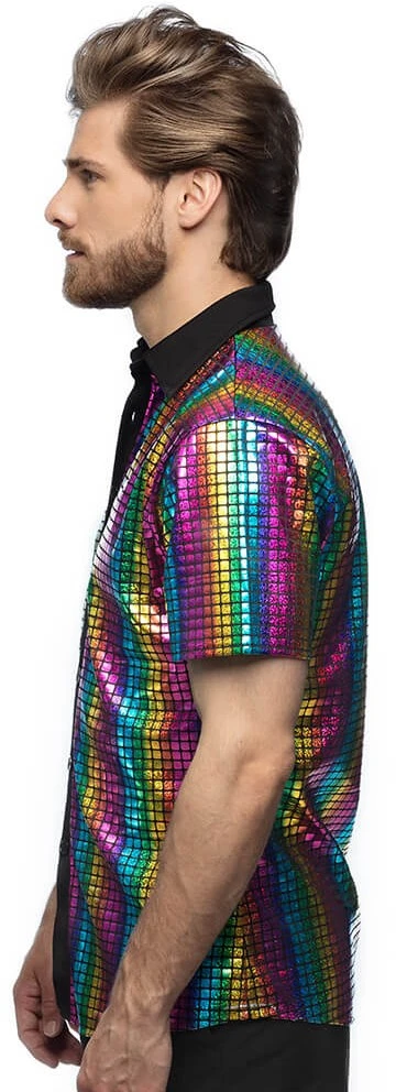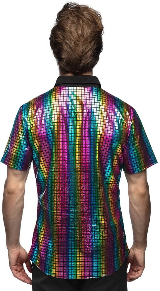 Details: glimmende gekleurde stof met een effen zwarte kraag