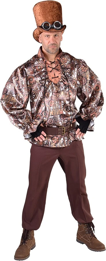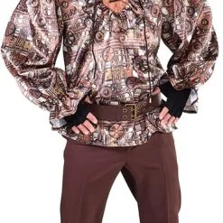 Stoere heren Steampunk blouse met een mooi motief van tandwielen.