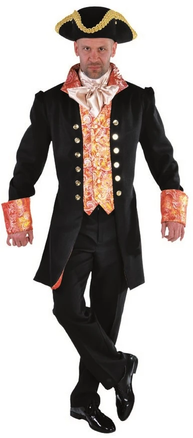 Heren Markiezen Jas Luxe Zwart, lengte tot op de knieën. Ook verkrijgbaar voor dames. (Exclusief driesteek)