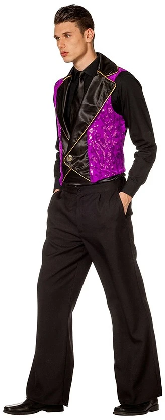 Heren Showvest Paars Luxe met gouden opdrukken en dicht te doen middels een knoop. Ook verkrijgbaar voor dames.