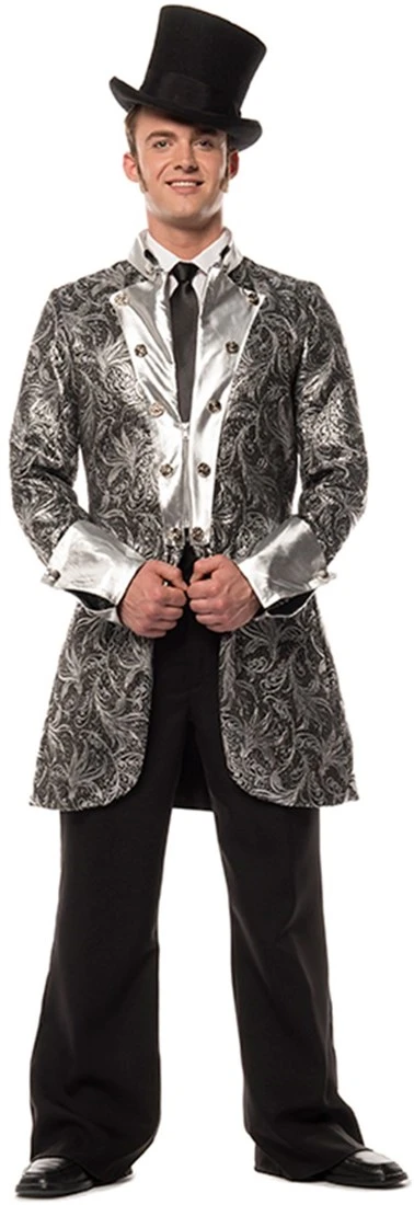 Gave Brokaat herenjas, erg luxe jas met mooie zilveren lijnen en andere versieringen. Ook verkrijgbaar in het goud.