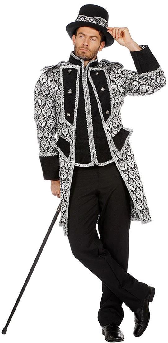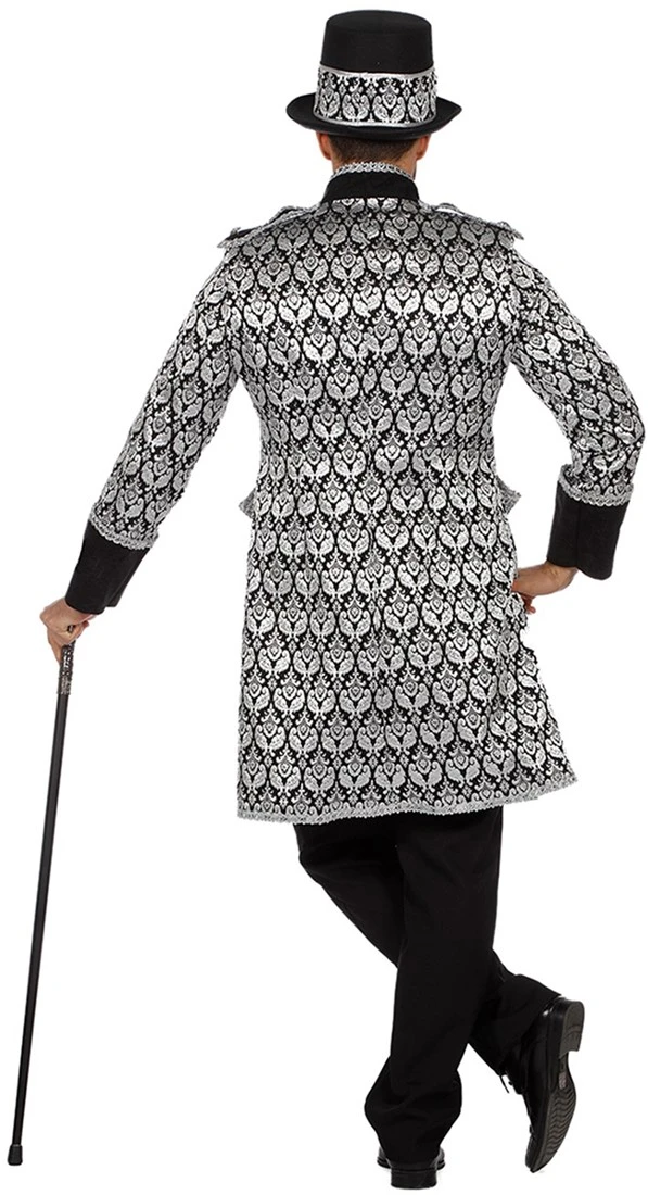 Een prachtige zwarte en zilveren jas voor bijna ieder feest! Deze carnavalsjas is uitstekend om aan te hebben tijdens (de aanloop naar) carnaval!