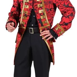 Een gave lange jas van goede kwaliteit, met een zwart/rood brokaat motief. Deze jas is met gouden details zoals lijnen en knopen versierd en is van 100% katoen/polyester gemaakt. Ook verkrijgbaar in meerdere kleuren en patronen.