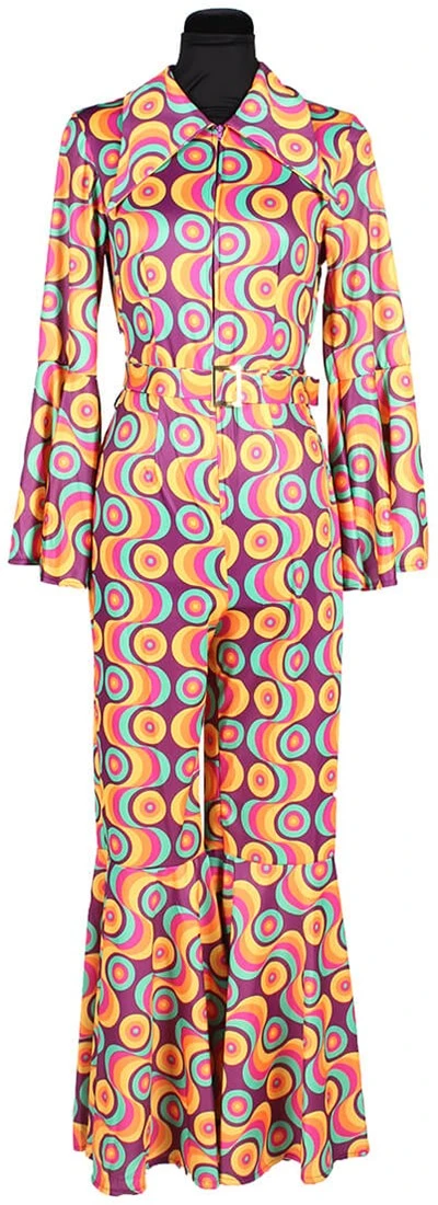 Details: grote puntige kraag en wijd uitlopende mouwen en broekspijpen