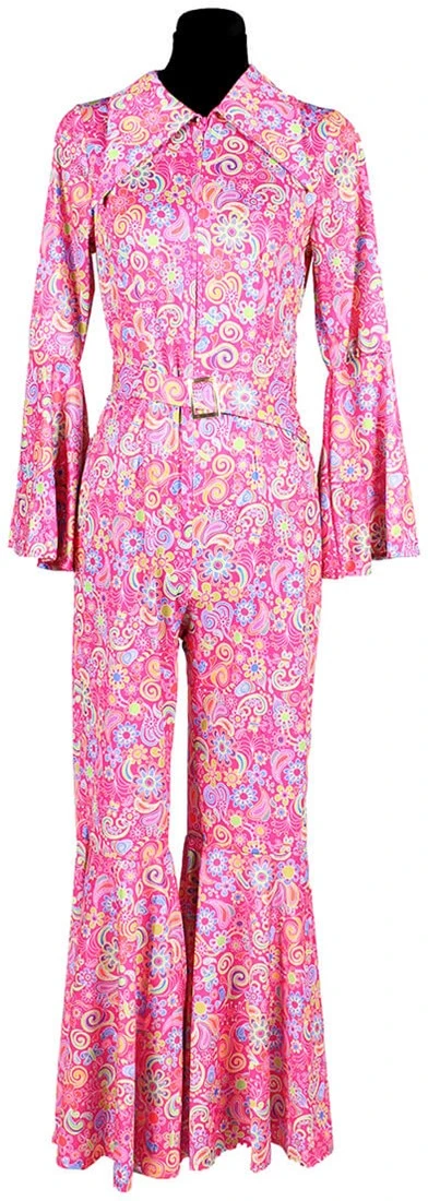 Details: grote puntige kraag en wijd uitlopende mouwen en broekspijpen