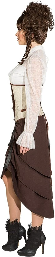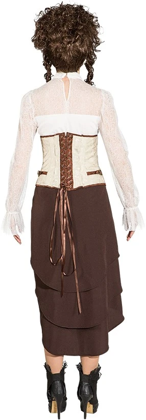 Een mooi korset voor een steampunk outfit. Het korset is dicht te doen met antieke metalen sluitingen voor een authentiek steampunk effect. Bijpassende rok, blouse en overjasje zijn apart verkrijgbaar.