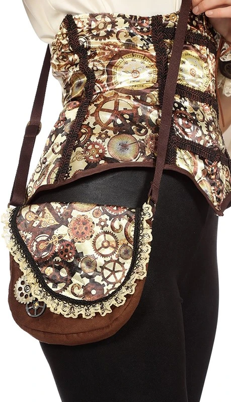 Met dit prachtige tasje neem je gemakkelijk al je benodigde spulletjes mee naar het steampunk feest. Wacht dus niet langer en stop snel al je spullen in het tasje!