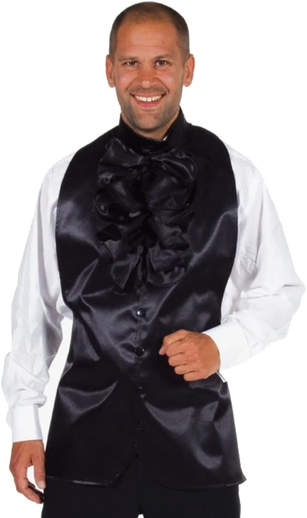 Sluiting: om de hals met klittenband en om het middel met linten aan de achterkant